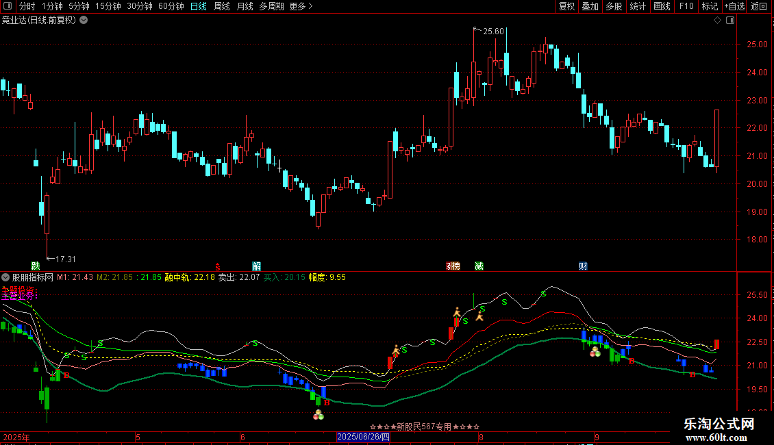 DRAWTEXT(CROSS(LOW,买入),LOW*0.98,'B'),COLORRED,LINETHICK2;