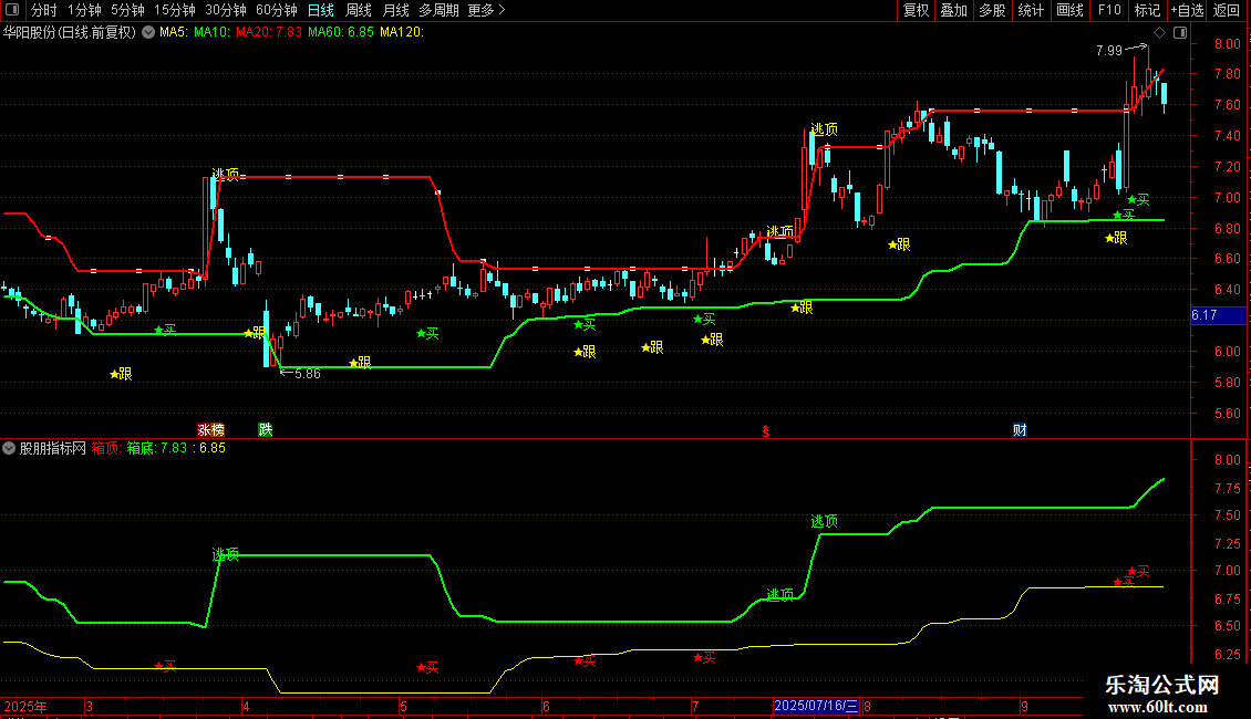 DRAWTEXT(CROSS(买线,卖线)AND 箱顶>=REF(箱顶,1),LOW*0.95,'★跟'),COLOR00FFFF;
