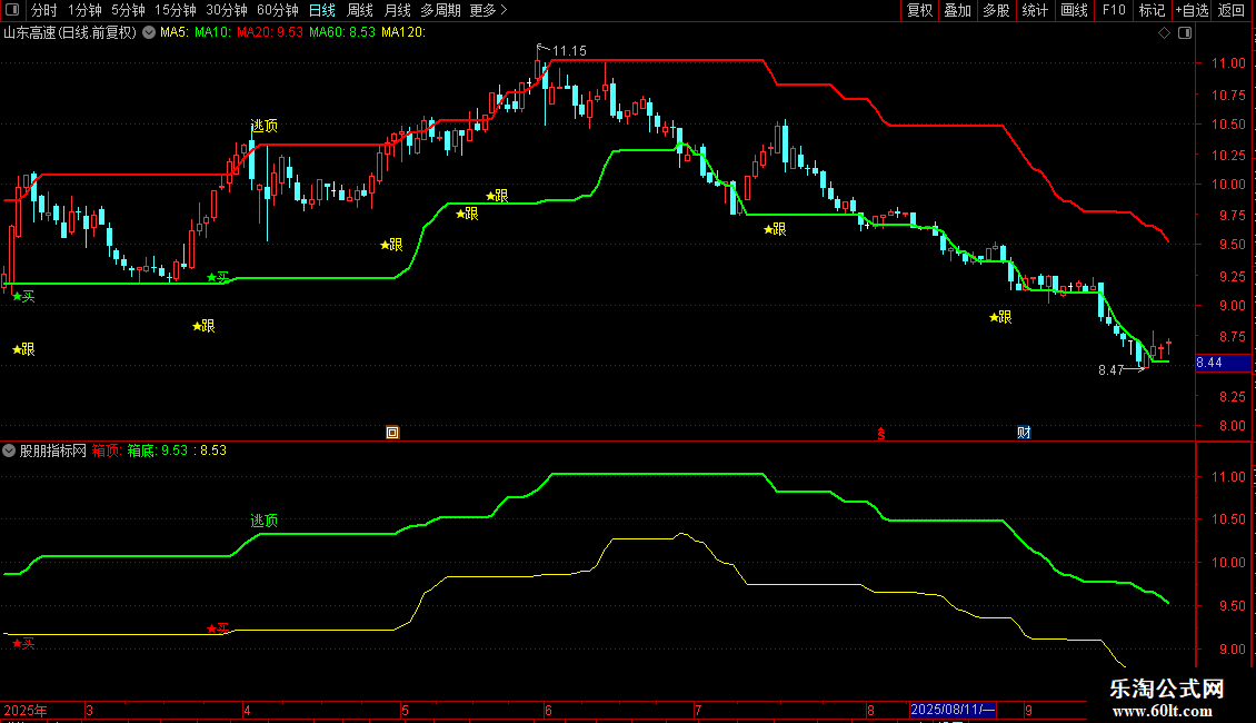 箱底:MA(REF(LLV(上收,30),1),2),COLOR00FF00,LINETHICK2;