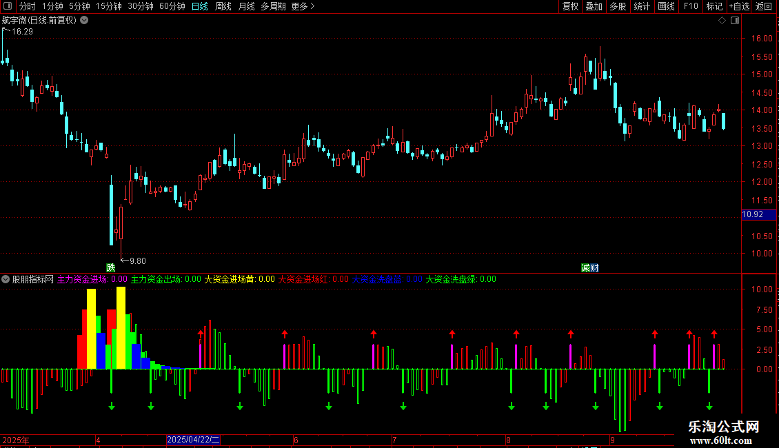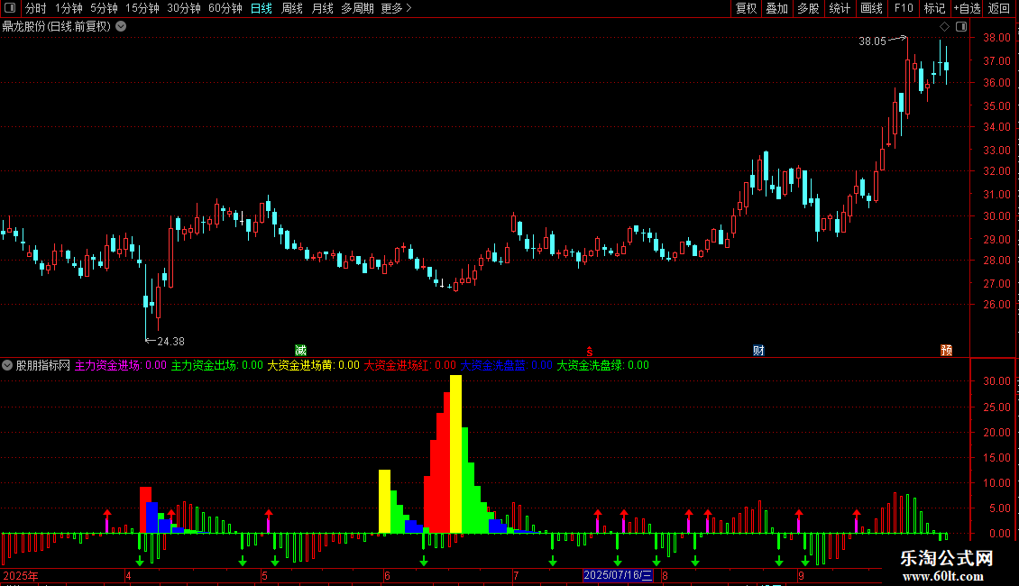洗盘:STICKLINE(VAR5<REF(VAR5,1),0,VAR5,7,0),COLORGREEN; 主力进场阳:STICKLINE(VAR5>REF(VAR5,1) AND C>O,0,VAR5,7,0 ),COLORYELLOW;