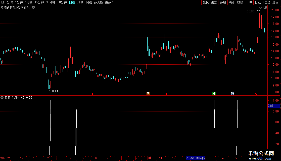 LS:=C/REF(C,1)>1.048 AND C=H AND BETWEEN(FORCAST(V,4),0.2*FORCAST(V,12),2.1*FORCAST(V,12));