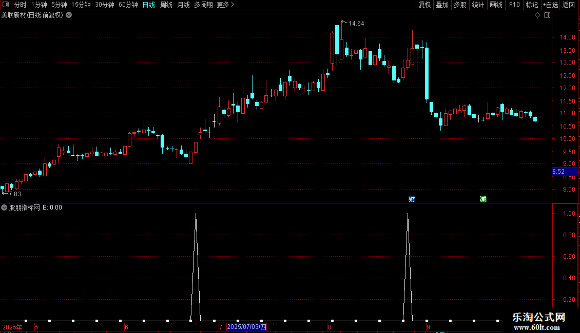 B:CROSS(K,D) AND K<50 AND C>REF(O,1) AND C>O AND C>MA1 AND C>MA2;