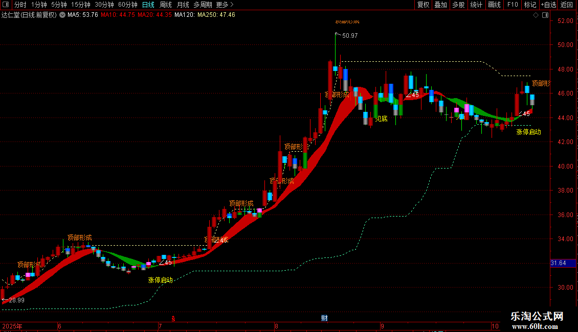 支撑:MA(REF(LLV(C,30),1),2),COLORABFF46,DOTLINE;