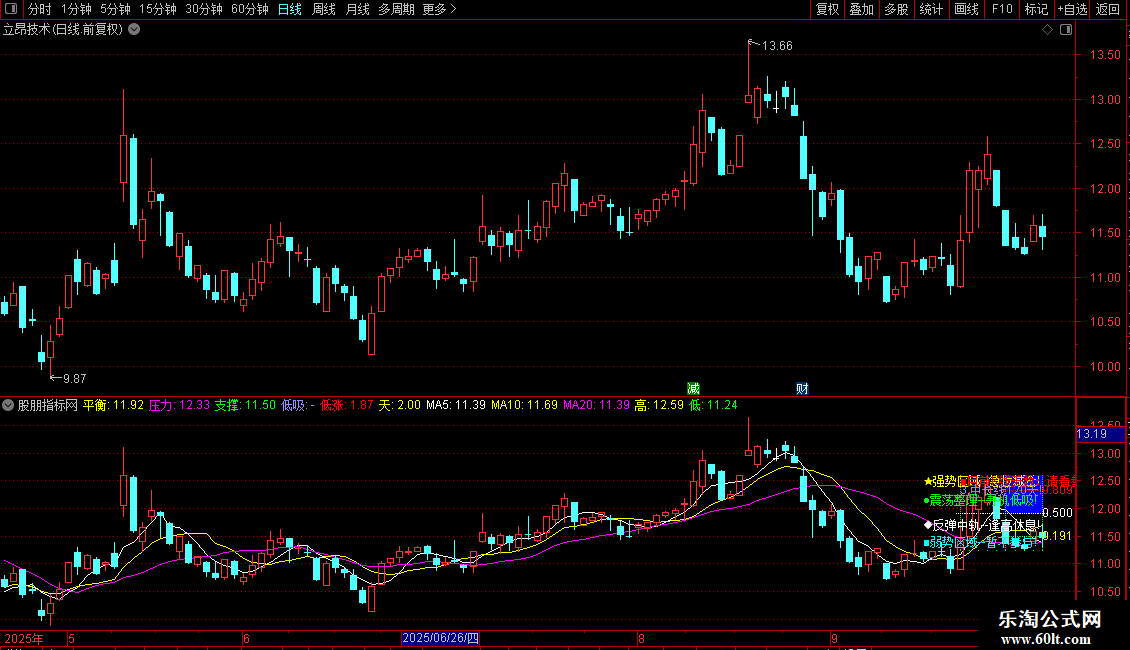 低吸:IF(CURRBARSCOUNT<=N/2 AND CROSS(平衡,LOW),1,DRAWNULL),COLORFF8899,NODRAW;