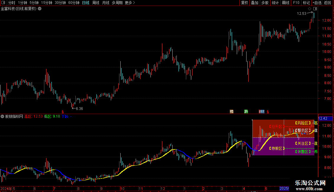DRAWTEXT(CURRBARSCOUNT=N11/2+15,GD-KJ*0.191,'【拉升区】'),COLORRED;