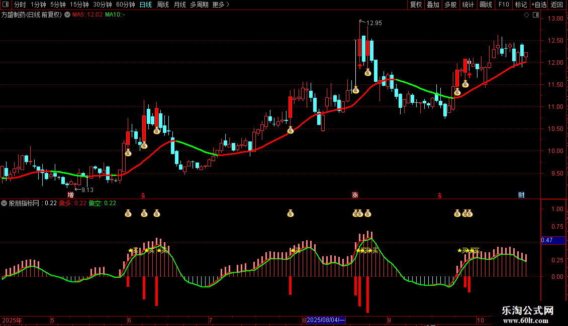 ◦ 副图共振:当副图中的红色量能柱出现,同时伴随钱袋子图标,与主图信号形成共振,这是趋势启动的进一步加强信号。