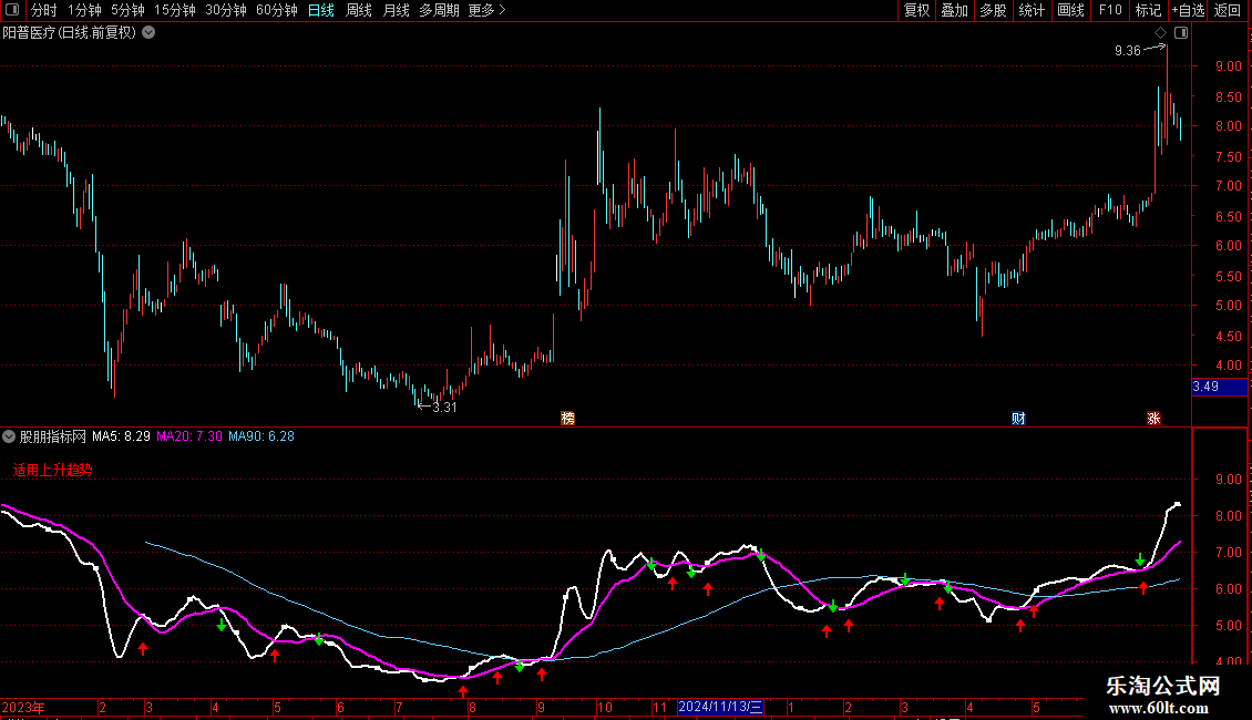 DRAWTEXT_FIX(1,0.01,0.05,0,'适用上升趋势'),COLORRED;