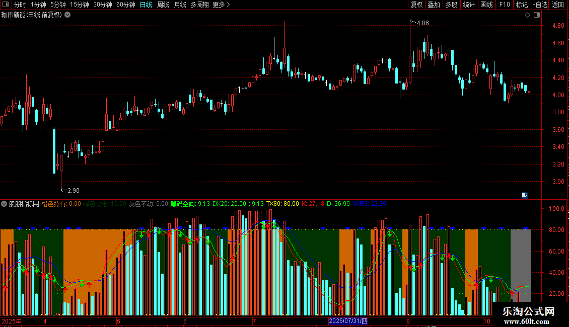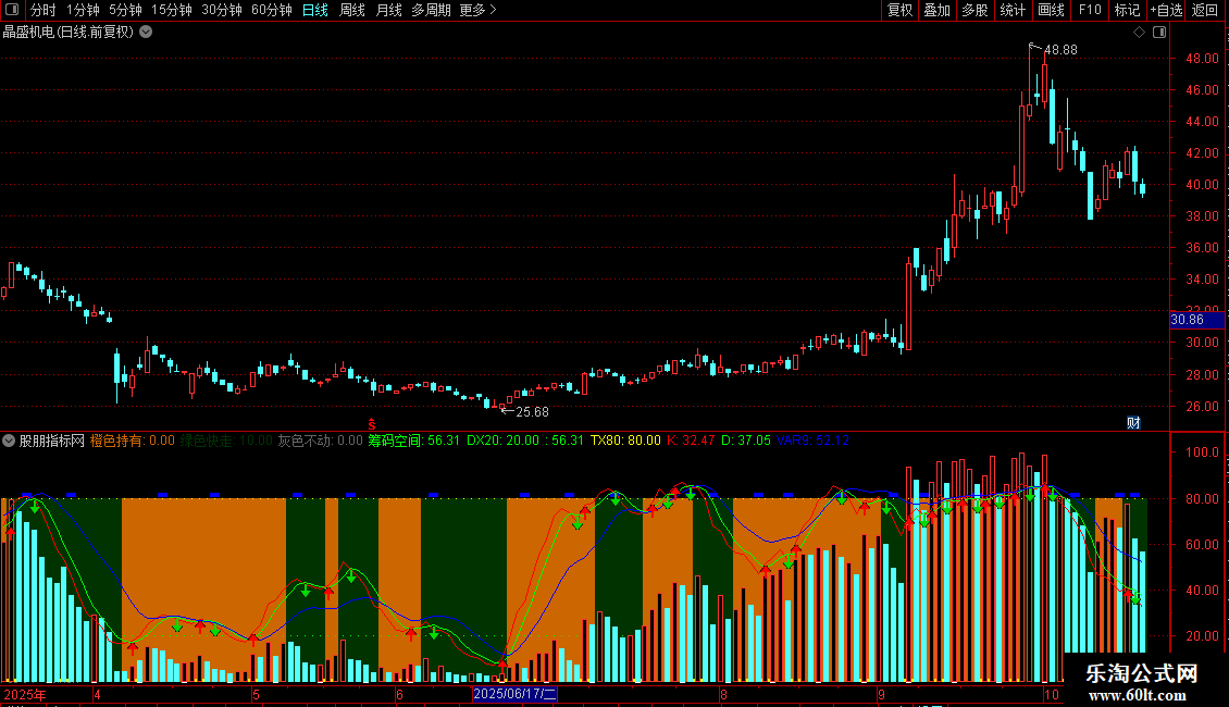筹码空间:IF(WINNER(CLOSE),WINNER(CLOSE)*100,20),VOLSTICK;