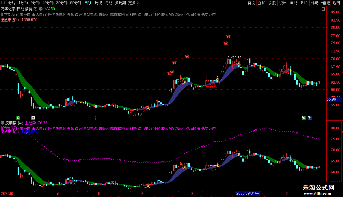 趋势强度:IF(CLOSE>次上趋势,HG66,HG68),COLORMAGENTA;