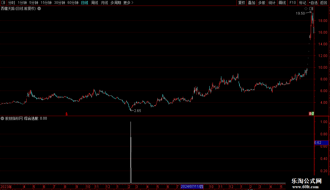 免责声明:乐淘公式网所有指标公式及文章由网络收集,不保障实时性和真实性, 仅供学习研究并不构成投资建议,请勿以此为依据进行股票交易,由此引起的投资亏损与本站无关。