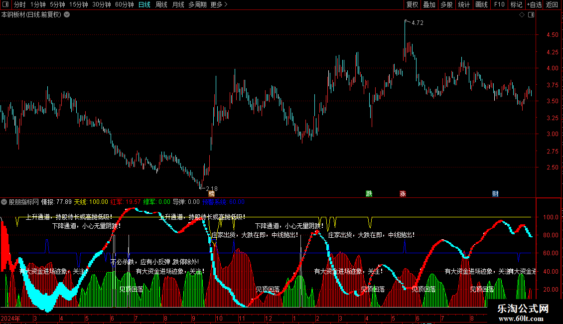 预警系统: IF(VAR7>=200 AND VAR6>=150,15,IF(VAR7<=-200 AND VAR6<=-150,-15,VAR9))+60;