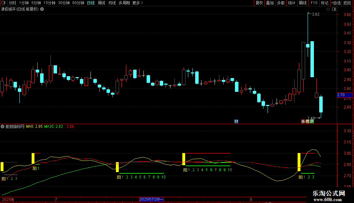 DRAWTEXT(BARSLAST(单阳)=3 AND 单阳不破,低不破价*0.98,'3'),COLORGREEN;