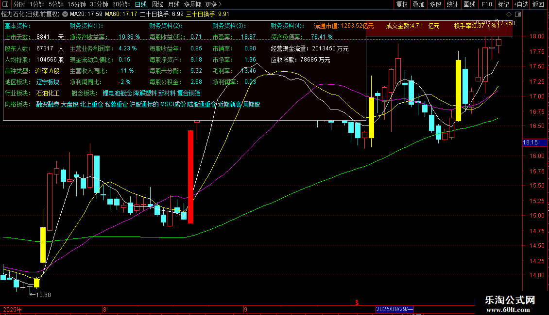 { K柱黄色是倍量、红色涨停、蓝色跌停}