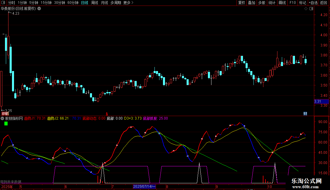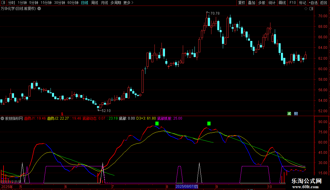 抢反弹:= IF(CROSS(K,D) AND BBIAS<-6 AND D<16 AND CLOSE>REF(CLOSE,1),80,0),COLOR00FF00;
