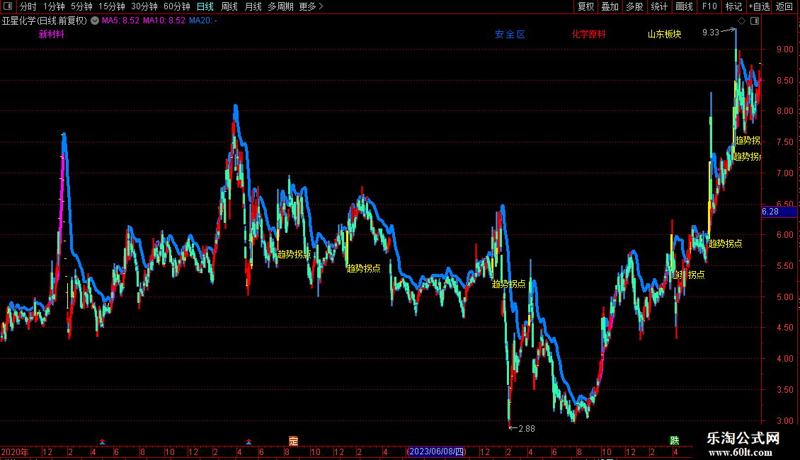 使用该指标时,可遵循以下要点:当趋势线由蓝转紫且股价上穿趋势线时,可视为买入信号;当出现“趋势拐点”提示并伴随放量,往往是加仓时机;而当趋势线由紫转蓝且股价跌破趋势线时,则应考虑卖出或减仓。