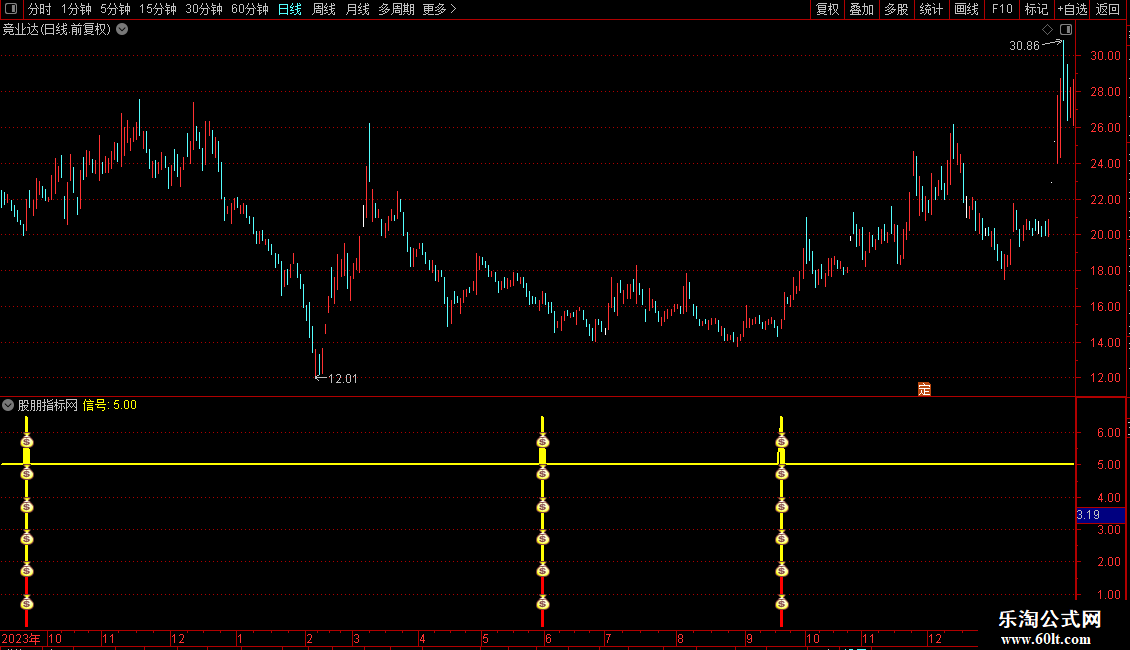 信号:IF(强势底分,6.5,5),COLORYELLOW,LINETHICK2;