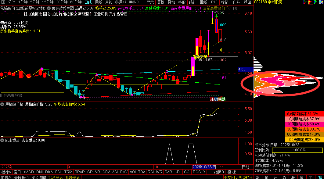 通达信【顶格筹码峰】的计算判断主力动向的重要技术指标主副图/选股源码