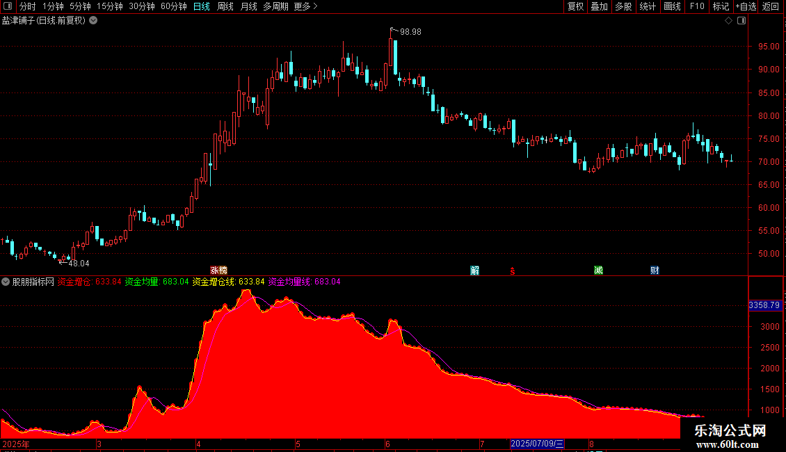 资金均量线:MA(DC,5),COLORMAGENTA;
