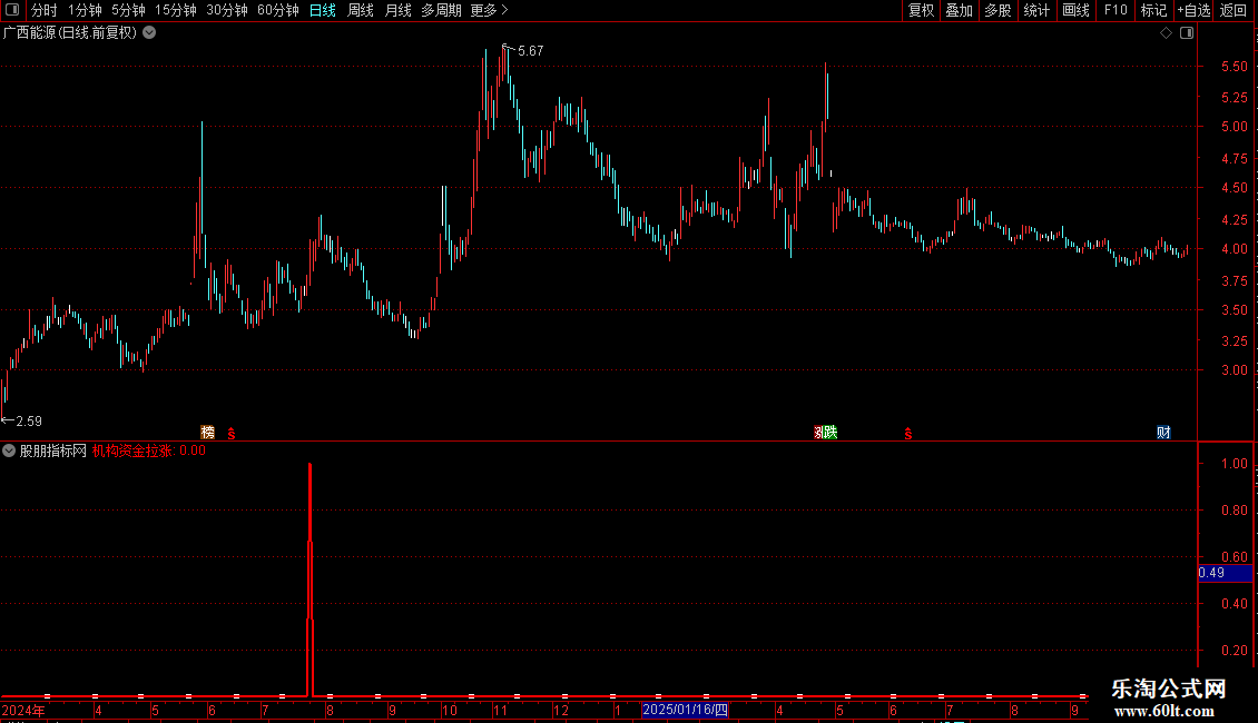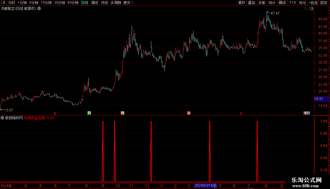 指标通过计算价格在不同周期的高低位置、资金流向和持股集中度等维度,综合判断机构资金进场拉涨的时机。当多个技术信号(如中长期趋势突破、资金强度达标、筹码集中)与短期均线金叉同步出现时,发出买入信号。