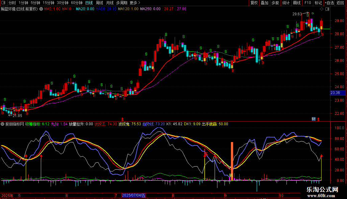 牵牛线:MA(CLOSE,26),COLORFF00FF;