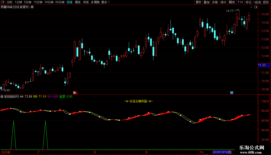 逃顶:IF(FILTER(CROSS(BB,AA) AND AA>80 ,3),60,00),COLORGREEN;