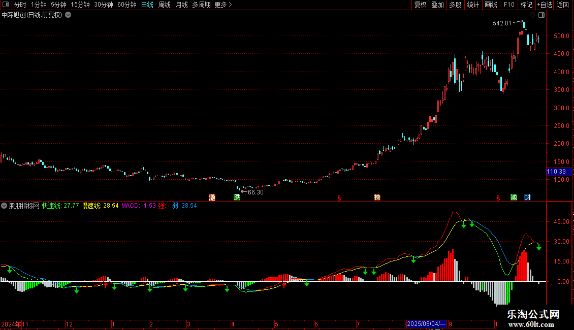 3、快速线突破零轴标示有红色箭头,这个红色的箭头具有特别的的意义,是神渔智能交易系统中可操作的前置指标,是和神渔智能交易系统的买点指标协调使用的,非常重要。