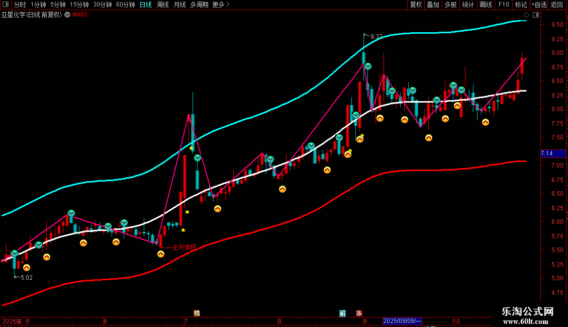 3. 出现红色"←←主升波段"提示,配合放量是短线爆发临界点