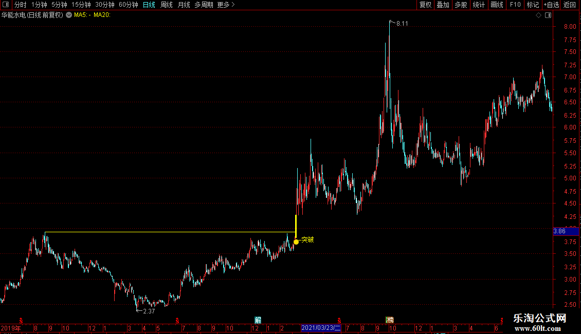 DRAWTEXT(XH,L*0.9905,'←突破'),COLORYELLOW;