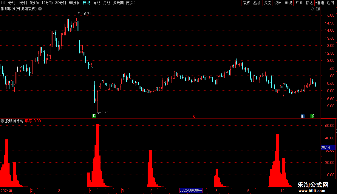 VAR8:=EMA(IF(LOW<=VAR5,(VAR4+VAR6*2)/2,0),3)/618*VAR7*VAR1;