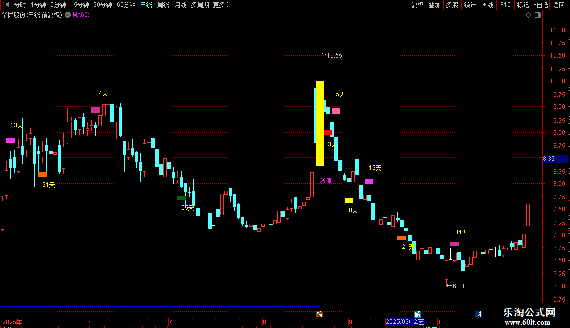 DRAWTEXT(VARZT=2,L*0.95,'3天'),COLORYELLOW;