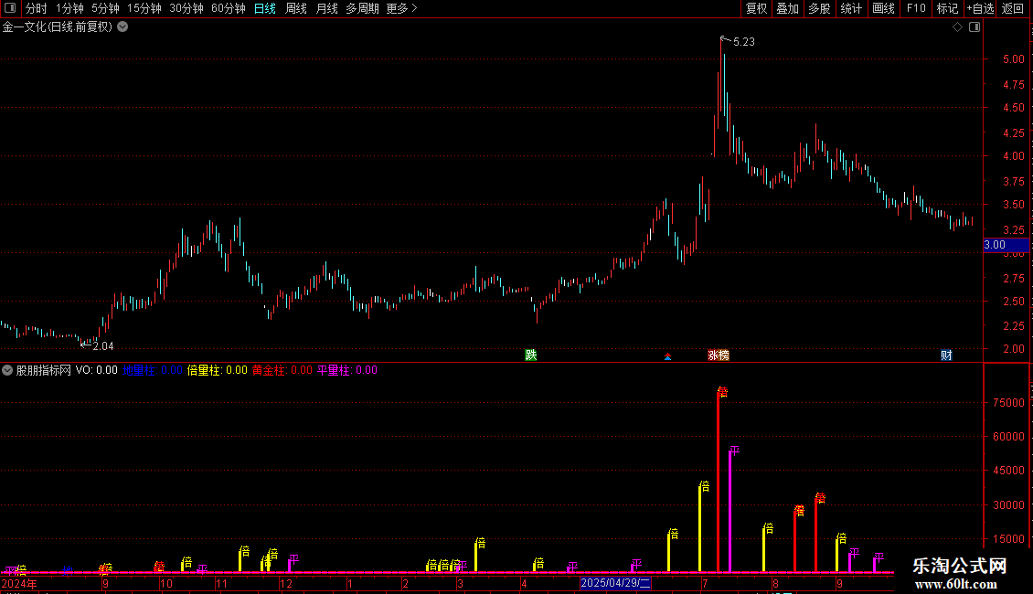 DRAWTEXT(倍量柱,VOL+3000,'倍'),COLORYELLOW;