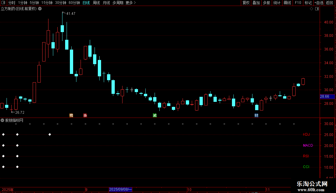 DRAWTEXT(ISLASTBAR,25,'KDJ '),LINETHICK2,COLORRED;