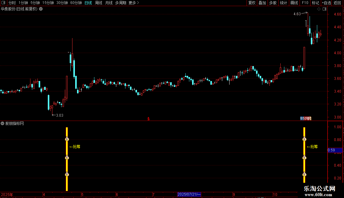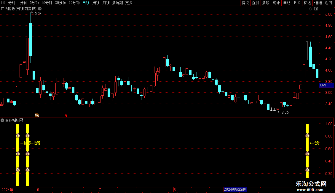 副图黄色柱子现钱袋子信号,标志擒龙指标主力介入启动,此时主力有强力拉升意图,需结合热门概念综合判断提升胜率。