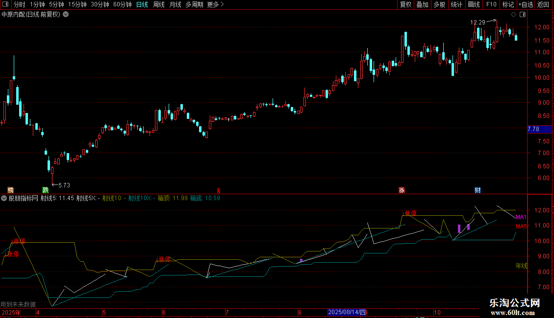 射线5X: DRAWLINE(L=LLV(L,5),L,H=HHV(H,5),L,0),COLORLIGRAY;