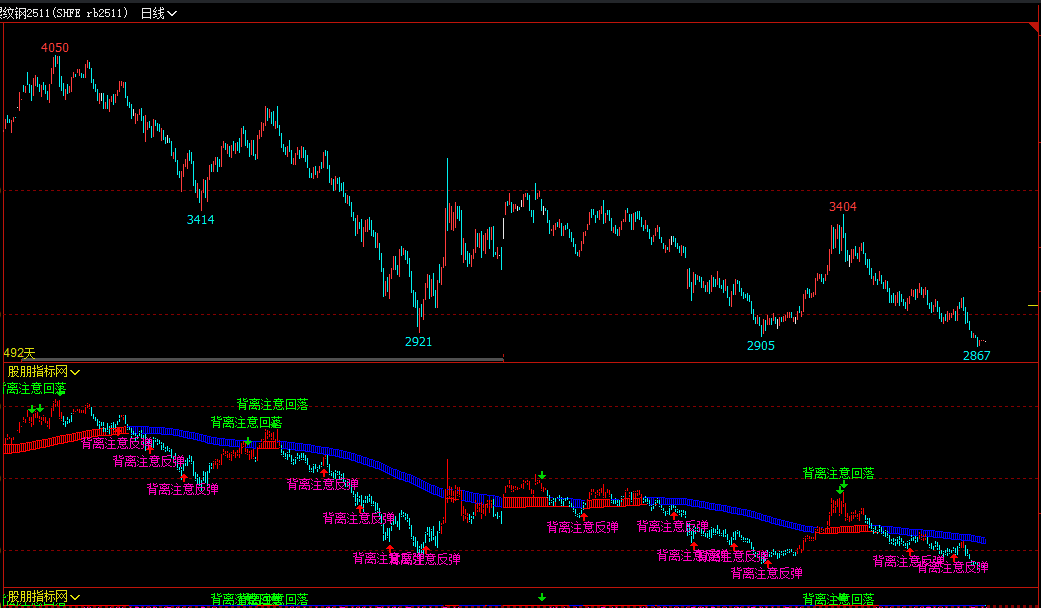 公式的核心在于将持仓量变化归类到“做多量能”与“做空量能”中:当增仓且价格上涨,视为有效多头动能;当增仓且价格下跌,则视为空头力量强劲。通过两条持续演变的红绿曲线,直观展示多空力量的实时消长。此外,它还能在图表上清晰标注出每日的最终多空量能值,并计算当日的累计净持仓变化,为判断趋势的强度提供了关键数据。对于短线交易者和希望洞察主力动向的投资者而言,这无疑是盘中最犀利的“显微镜”,能帮助您把握先机,跟随强势一方操作。