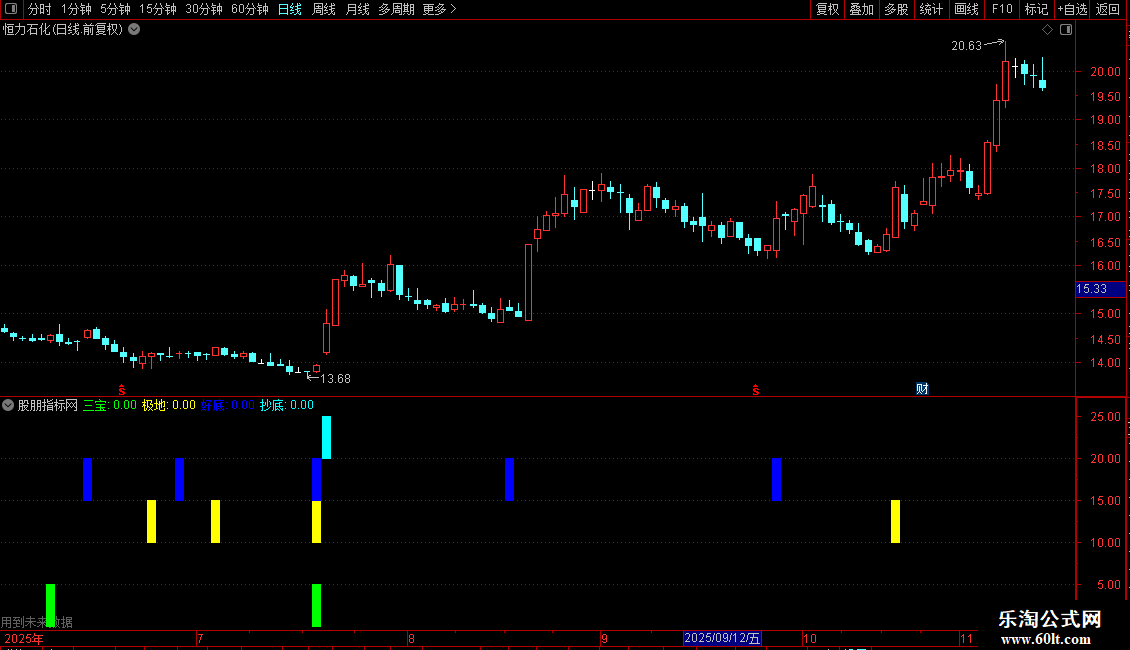 A线:=HHV(D,13)COLORYELLOW,LINETHICK2;