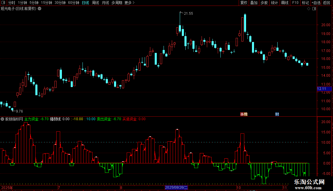 主力资金:(B-B1)*100/B, LINETHICK2,COLORGREEN;