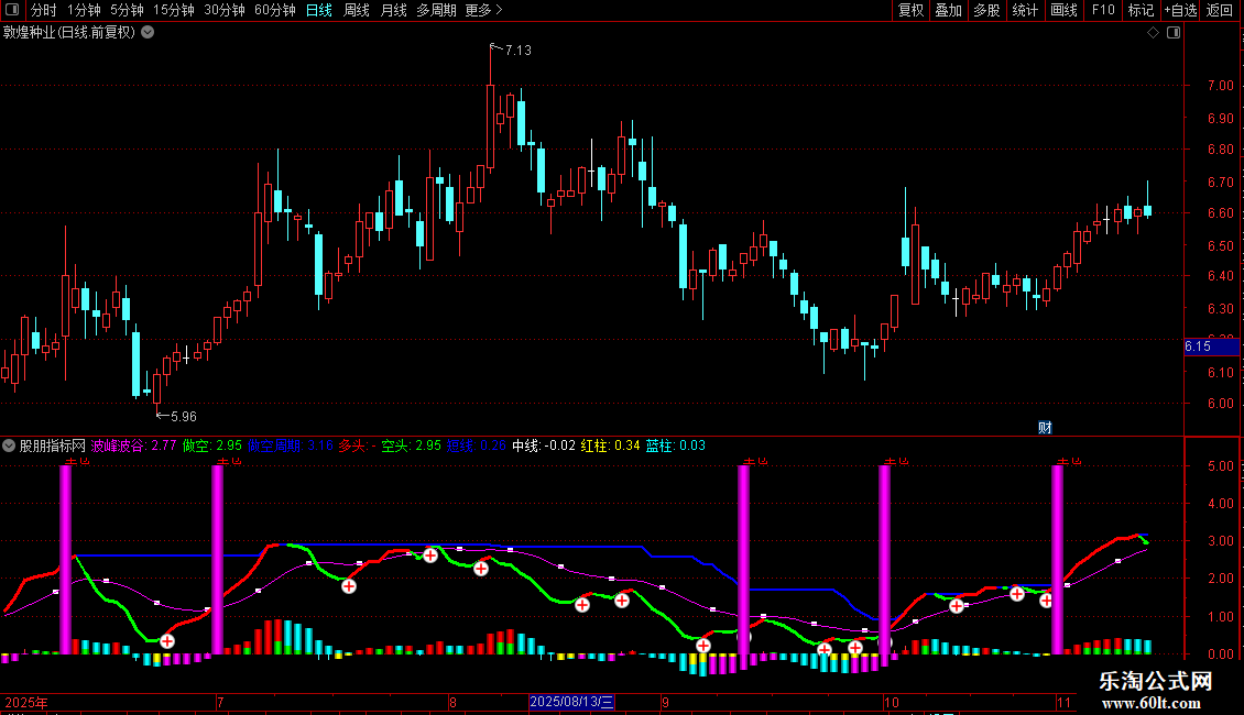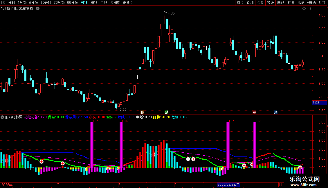 波峰波谷:SMA(拉升力A,3,1),COLORFF00FF;