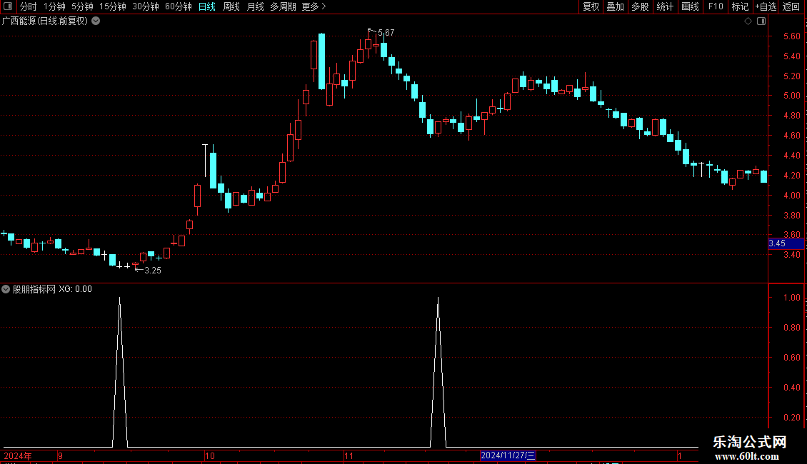 输出XG:收盘价>=开盘价 AND 收盘价<=BB AND 收盘价<=EE