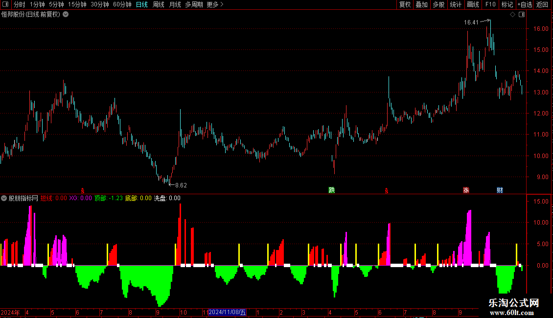 短线:IF(VARB>REF(VARB,1)&&VARB>0,VARB,0),COLORRED,NODRAW;