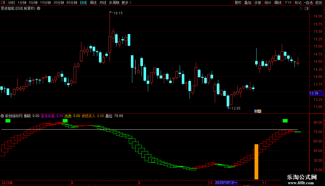 低吸:IF(CROSS(RSI,11),70,0),COLORWHITE,POINTDOT;