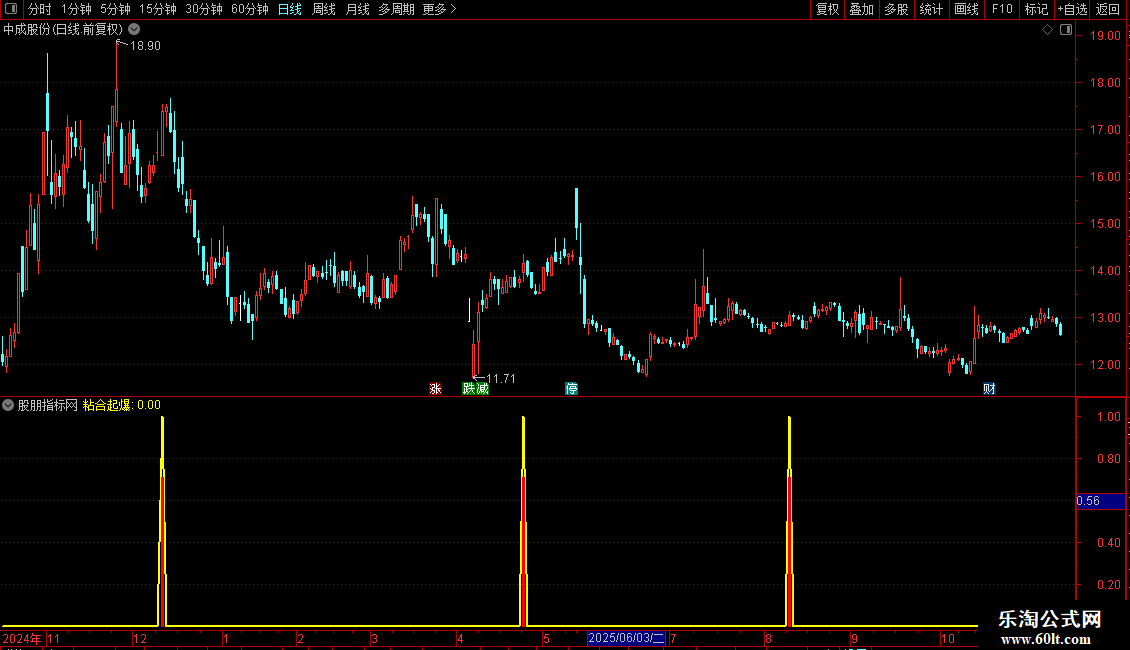 指标识别短期均线粘合后的突破时机。当多条均线极度靠拢(粘合),同时出现价格上涨、成交量放大且短期均线呈多头排列时,发出买入信号。
