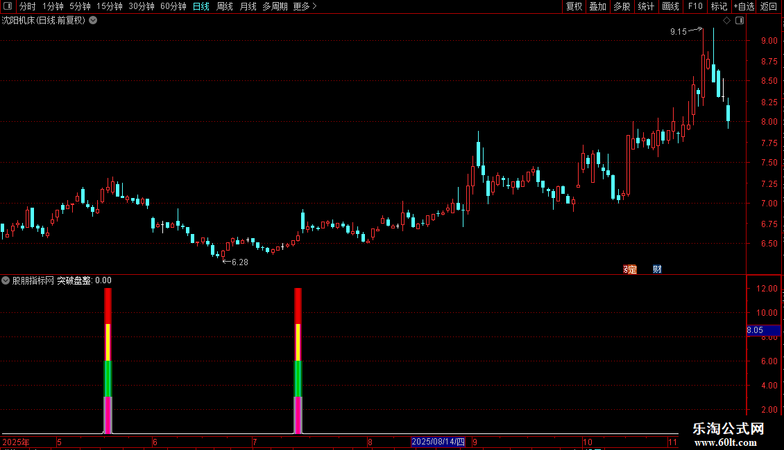 DRAWTEXT(突破盘整,1.5,''),COLORRED;