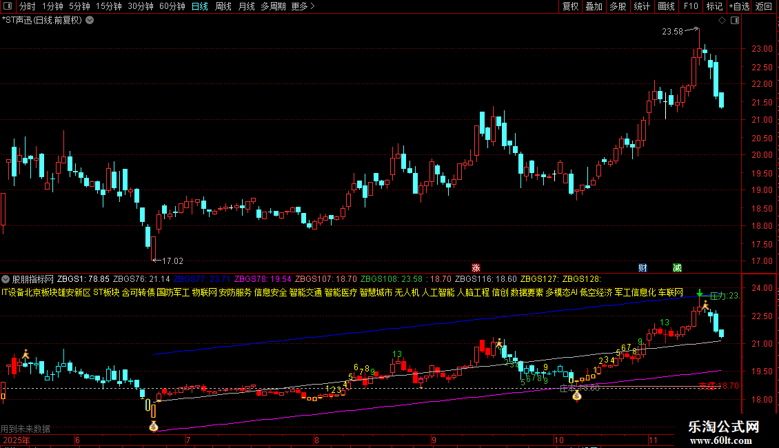 ZBGS22:=IF(CURRBARSCOUNT<=120/30,ZBGS14+ZBGS15*0.618,DRAWNULL),COLORCYAN;