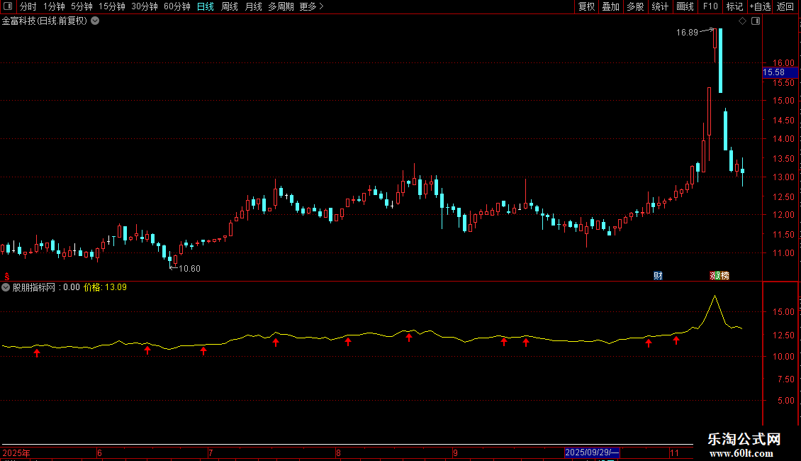 通过价格波动幅度和累积能量计算趋势强度(ASI),再结合平滑处理的随机指标(KDJ)判断买卖点。