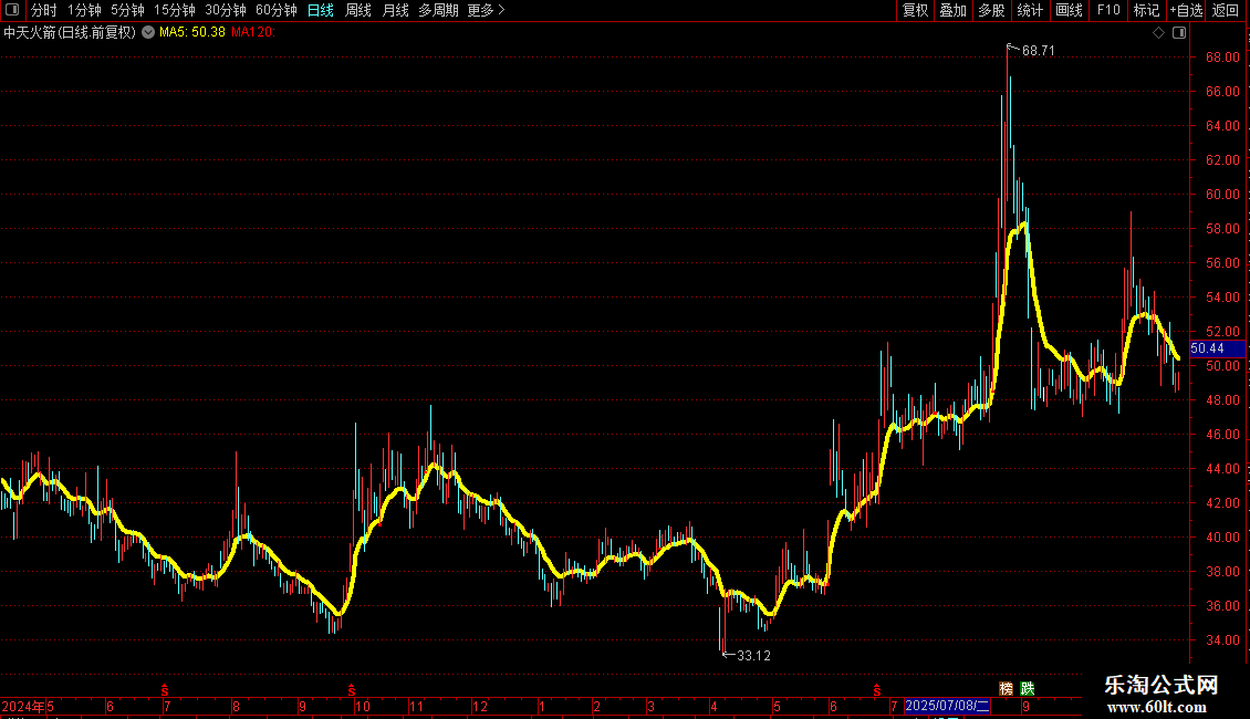 趋势线:(MA(C,3)+MA(C,6)+MA(C,12)+MA(C,24))/4,COLORYELLOW,LINETHICK4;