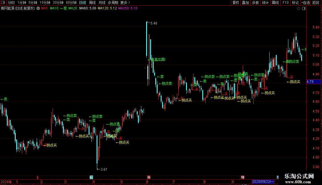 DRAWTEXT(CROSS(卖线,买线),HIGH*1.01,'←卖'),COLORGREEN;