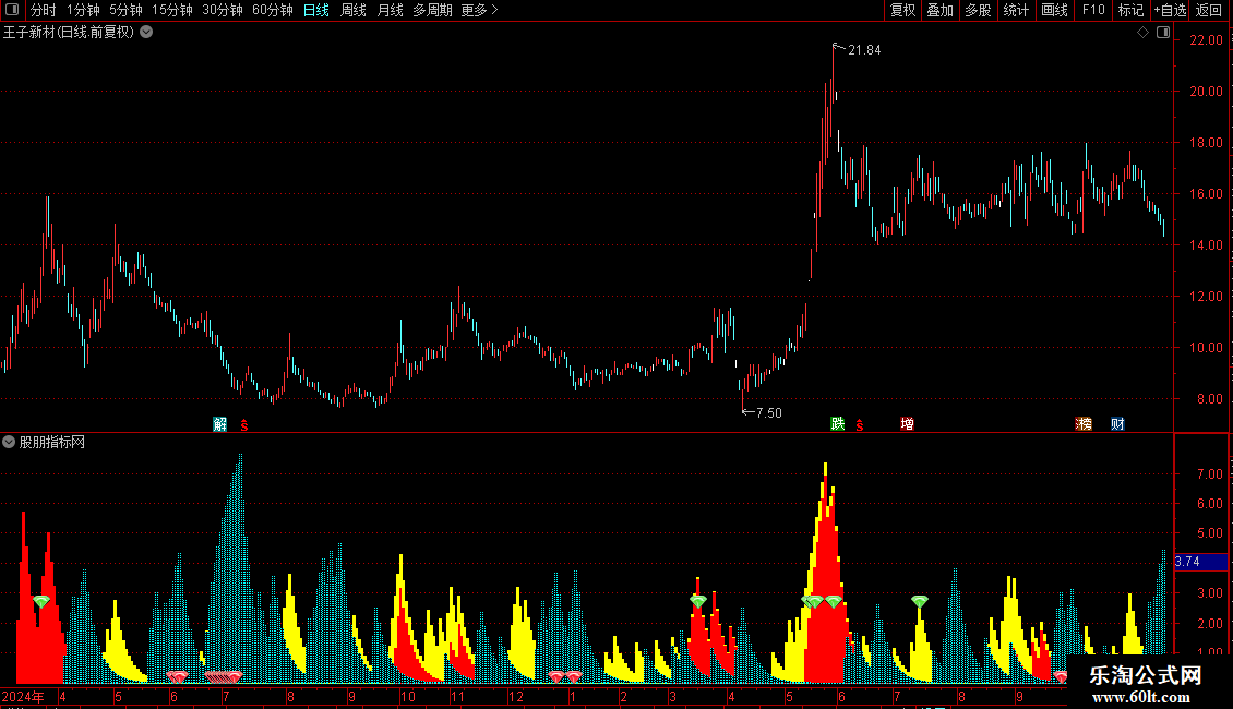 VAR7:=3-(EMA(IF(H>=HHV(H,34),-VAR5/VAR6,3),9));