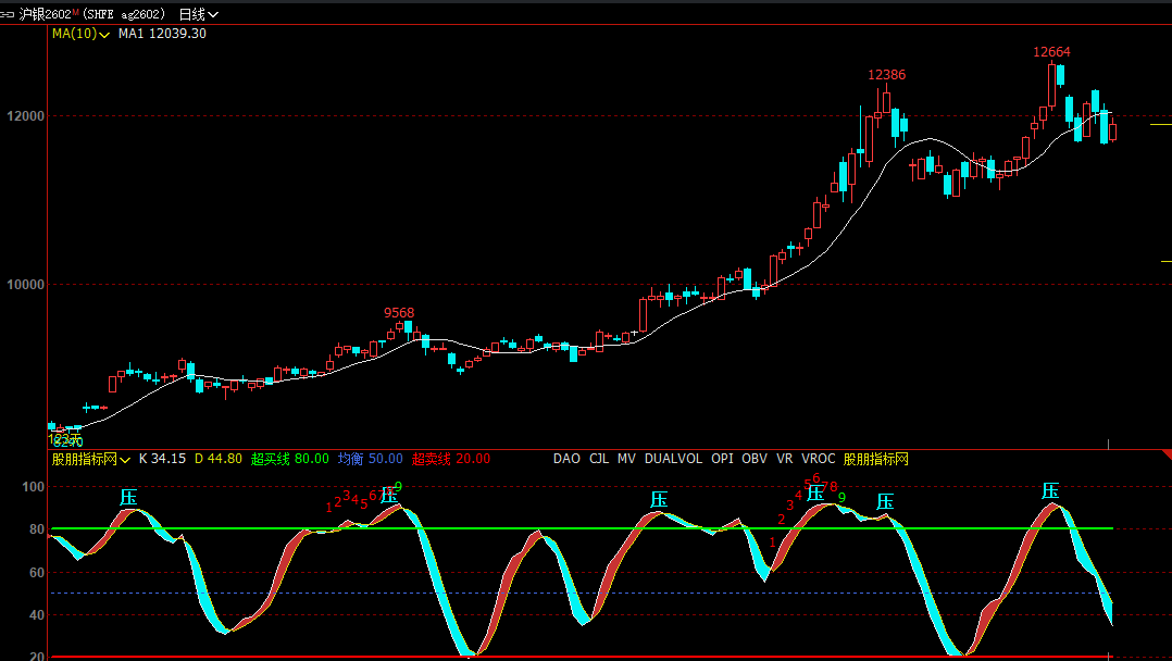 LOWV:=LLV(LOW,9);HIGHV:=HHV(HIGH,9);RSV:=EMA((CLOSE-LOWV)/(HIGHV-LOWV)*100,3);K:EMA(RSV,3);D:MA(K,3);FILLRGN1(K>=D,K ,D ),RGB(200,50,50);FILLRGN1(K<D,K ,D ),RGB(0,244,244);超买线:80,COLORGREEN,LINETHICK2;均衡:50,COLOR4169E1,DOT;超卖线:20,COLORRED,LINETHICK2;DRAWTEXT(FILTER(K>85 AND D>85,5),K,'压'),COLORCYAN,ALIGN1,FONTSIZE20;DRAWTEXT(FILTER(K<15 AND D>15,5),K,'托'),COLORRED,ALIGN1,FONTSIZE20; RSV1:=EMA((CLOSE-LOWV)/(HIGHV-LOWV)*100,3);K1:=EMA(RSV1,3);D1:=MA(K1,3);最近死叉距离2:=BARSLAST(CROSS(D1,K1));前一次死叉距离2:=REF(BARSLAST(CROSS(D1,K1)),最近死叉距离2+1);SPD:=LLV(L,最近死叉距离2+1)<REF(IF(L=LLV(L,最近死叉距离2+1),L,0),前一次死叉距离2);SPD1:=LLV(K1,最近死叉距离2+1)>REF(IF(K1=LLV(K1,最近死叉距离2+1),K1,0),前一次死叉距离2);SKD底背:=CROSS(K1,D1) AND SPD=1 AND SPD1=1 AND REF(IF(K1=LLV(K1,最近死叉距离2+1),K1,0),前一次死叉距离2)<20 AND LLV(K1,最近死叉距离2+1);DRAWTEXT(SKD底背 AND K<20 AND D<20,K*1.02,'底背离'),COLORYELLOW;TJ:=C>REF(C,4);CL:=C<REF(C,4);JL:=BARSLAST(TJ);D11:=JL=1 AND CL;D2:=JL=2 AND CL AND REF(D11,1);D3:=JL=3 AND CL AND REF(D2,1);D4:=JL=4 AND CL AND REF(D3,1);D5:=JL=5 AND CL AND REF(D4,1);D6:=JL=6 AND CL AND REF(D5,1);D7:=JL=7 AND CL AND REF(D6,1);D8:=JL=8 AND CL AND REF(D7,1);D9:=JL=9 AND CL AND REF(D8,1);CG:=(ISLASTBAR=1 AND D1) OR BACKSET(ISLASTBAR=1 AND D2,2) OR BACKSET(ISLASTBAR=1 AND D3,3) OR BACKSET(ISLASTBAR=1 AND D4,4) OR BACKSET(ISLASTBAR=1 AND D5,5) OR BACKSET(ISLASTBAR=1 AND D6,6) OR BACKSET(ISLASTBAR=1 AND D7,7) OR BACKSET(ISLASTBAR=1 AND D8,8) OR BACKSET(D9,9); DRAWTEXT(CG AND JL=1,D*1.05,'1'),COLORGREEN;DRAWTEXT(CG AND JL=2,D*1.05,'2'),COLORGREEN;DRAWTEXT(CG AND JL=3,D*1.05,'3'),COLORGREEN;DRAWTEXT(CG AND JL=4,D*1.05,'4'),COLORGREEN;DRAWTEXT(CG AND JL=5,D*1.05,'5'),COLORGREEN;DRAWTEXT(CG AND JL=6,D*1.05,'6'),COLORGREEN;DRAWTEXT(CG AND JL=7,D*1.05,'7'),COLORGREEN;DRAWTEXT(CG AND JL=8,D*1.05,'8'),COLORGREEN;DRAWTEXT(CG AND JL=9,D*0.8,'9'),COLORMAGENTA;GQT:=C<REF(C,4);GCL:=C>REF(C,4);GJL:=BARSLAST(GQT);GD1:=GJL=1 AND GCL;GD2:=GJL=2 AND GCL AND REF(GD1,1);GD3:=GJL=3 AND GCL AND REF(GD2,1);GD4:=GJL=4 AND GCL AND REF(GD3,1);GD5:=GJL=5 AND GCL AND REF(GD4,1);GD6:=GJL=6 AND GCL AND REF(GD5,1);GD7:=GJL=7 AND GCL AND REF(GD6,1);GD8:=GJL=8 AND GCL AND REF(GD7,1);GD9:=GJL=9 AND GCL AND REF(GD8,1);GCG:=BACKSET(ISLASTBAR=1 AND GD5,5) OR BACKSET(ISLASTBAR=1 AND GD6,6) OR BACKSET(ISLASTBAR=1 AND GD7,7)OR BACKSET(ISLASTBAR=1 AND GD8,8) OR BACKSET( GD9,9);DRAWTEXT(GCG AND GJL=1,K*1.1,'1'),COLORRED;DRAWTEXT(GCG AND GJL=2,K*1.1,'2'),COLORRED;DRAWTEXT(GCG AND GJL=3,K*1.1,'3'),COLORRED;DRAWTEXT(GCG AND GJL=4,K*1.1,'4'),COLORRED;DRAWTEXT(GCG AND GJL=5,K*1.1,'5'),COLORRED;DRAWTEXT(GCG AND GJL=6,K*1.1,'6'),COLORRED;DRAWTEXT(GCG AND GJL=7,K*1.05,'7'),COLORRED;DRAWTEXT(GCG AND GJL=8,K*1.05,'8'),COLORRED;DRAWTEXT(GCG AND GJL=9,K*1.05,'9'),COLORGREEN;