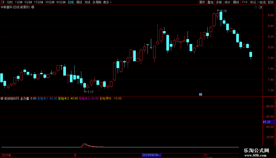 彩柱寻牛指标包含副图与选股功能,属底部类技术指标。信号出现表明进入底部区域,存在反转机会,且信号无漂移,源码支持手机电脑双端通用。